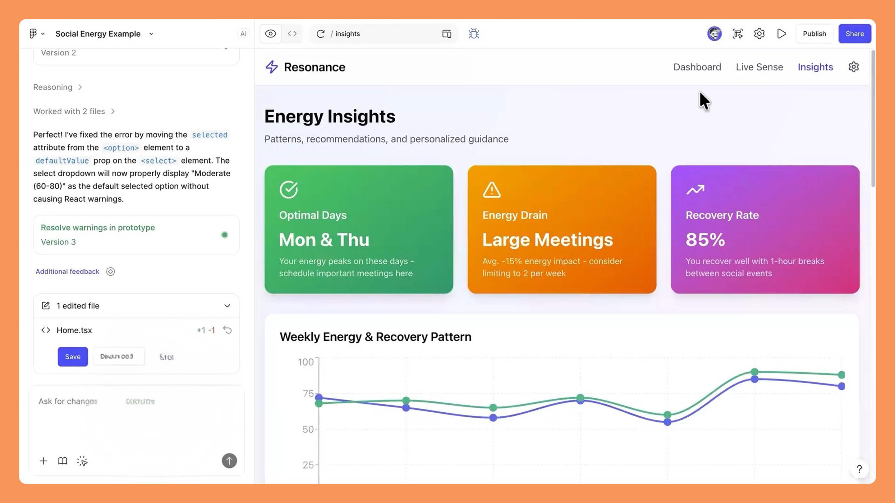 La création d'interfaces complexes, comme un tableau de bord de suivi d'énergie sociale, demande souvent plusieurs itérations. Nous utilisons des prompts pour tester différentes variantes de mise en page et de navigation multi-pages. L'IA nous aide à générer rapidement des sections comme les paramètres ou le tableau de bord principal, que nous pouvons ensuite affiner individuellement.