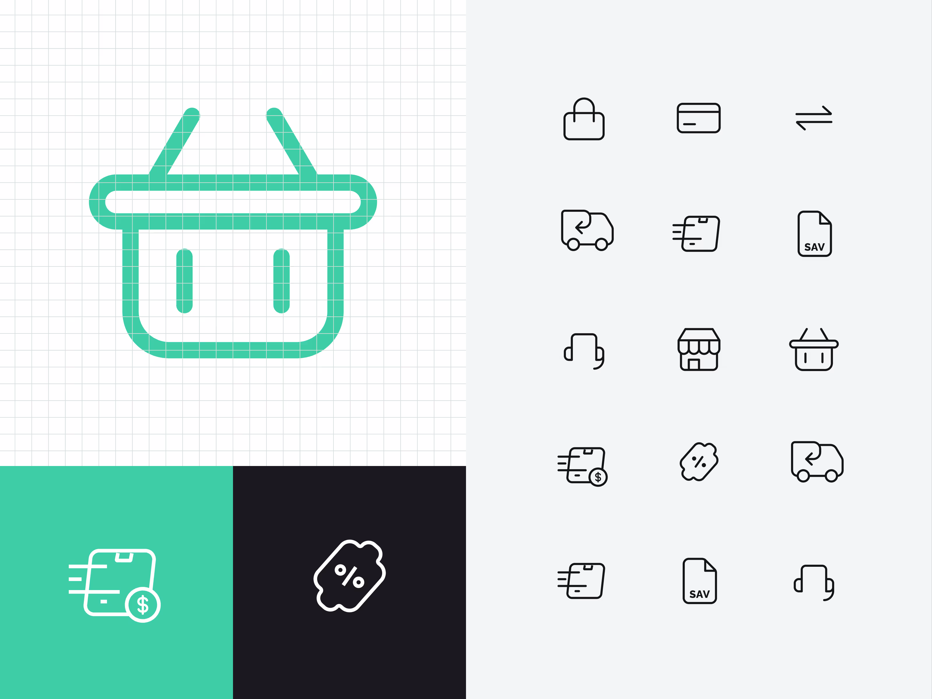 Notre pack d'icônes vous offre une collection en constante croissance d'icônes minimalistes, entièrement personnalisables et bien organisées, sur le thème des boutiques en ligne. Idéales pour les applications, le Web, les présentations et plus encore. Chaque icône est livrée en haute résolution et peut être facilement personnalisée. Ajoutez ce pack à votre collection de ressources de design dès maintenant !